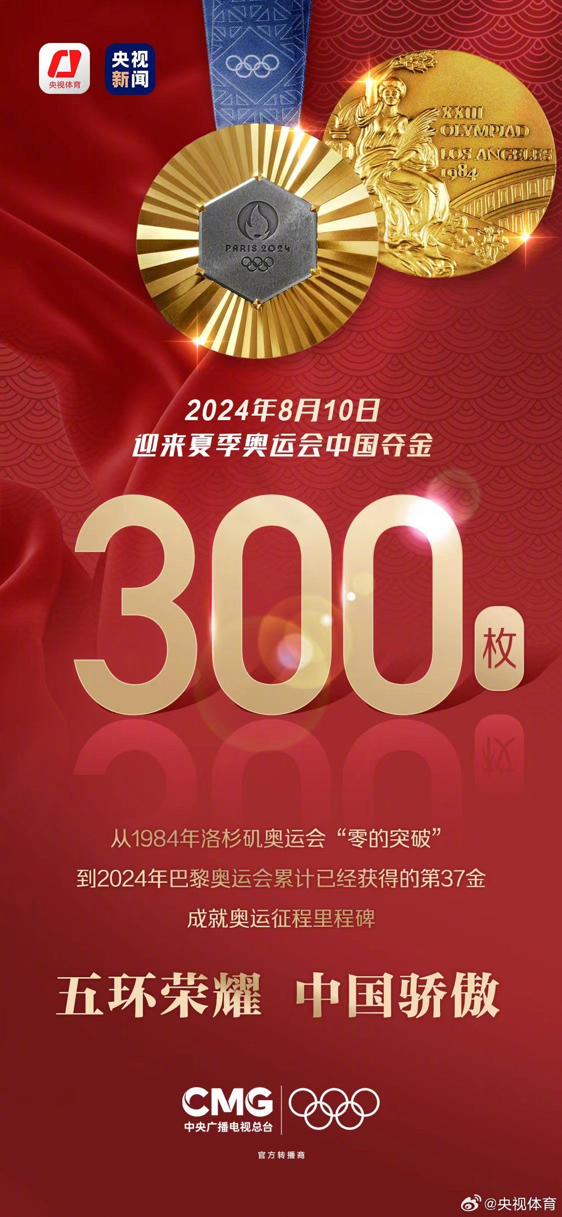 值得一提的是,据统计,这是自许海峰1984年为中国“射落”奥运会首金开始,中国体育代表团在夏季奥运会中斩获的第300枚金牌。恭喜中国队!