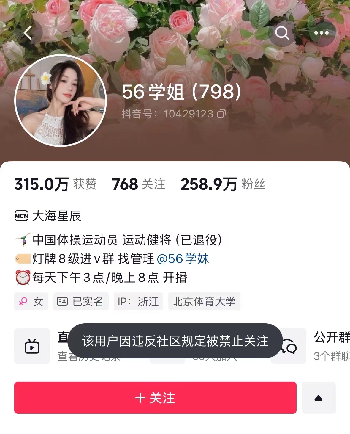 12月1日晚,前体操世界冠军吴柳芳账号已解除禁止关注,该账号飞速涨粉。