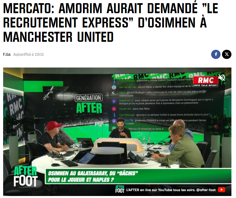 土媒:阿莫林入主曼联后欲签奥斯梅恩,或将齐尔克泽加入交易