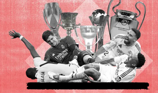 自2023年8月10日,库尔图瓦的左膝在西甲联赛开赛前夕受伤以来,皇马便一直面临这样艰难且极其危险的局面。后来,米利唐、阿拉巴和卡瓦哈尔也遭遇了严重膝伤,其中米利唐伤了两次。然而,尽管面临如此困境,皇马依然在这段时间内收获了五座奖杯,他们将西甲、欧冠、西超杯、欧超杯以及洲际杯都被收入囊中。