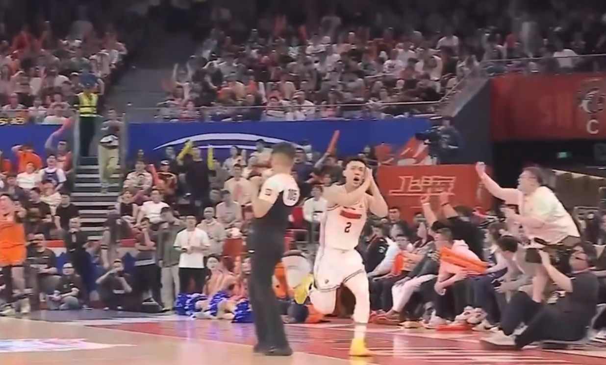 徐杰在命中了一记超远三分后再次做出了熟悉的“晚安安”庆祝动作。